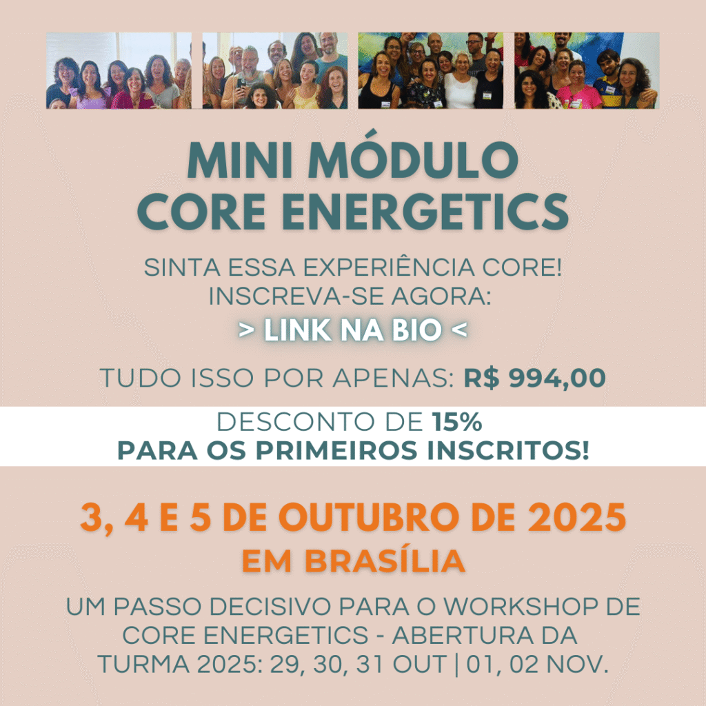 Convite exclusivo do Mini Módulo de Core Energetics nos dias 3, 4 e 5 de Outubro de 2025 e experimente uma profunda reconexão com sua força vital!
